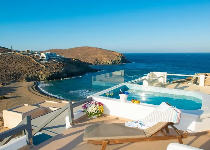Myrsini'S Luxury Suites Merchia villa heeft een ingerichte keuken, voorzien van een waterkoker, een koelkast en een broodrooster. De dichtstbijzijnde luchthaven is Mikonos, op 5 km van de woning.